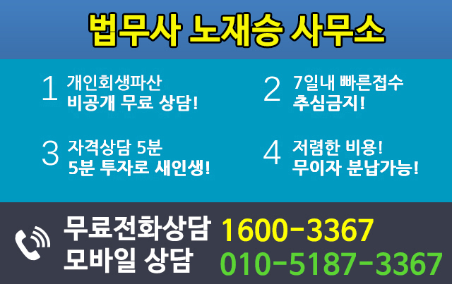 이런 사례 말고도 많은 신청 불가 사례가 많습니다. 1:1 맞춤 무료전화상담 시 5분이면 개인회생 자격 바로 확인 해드립니다.
